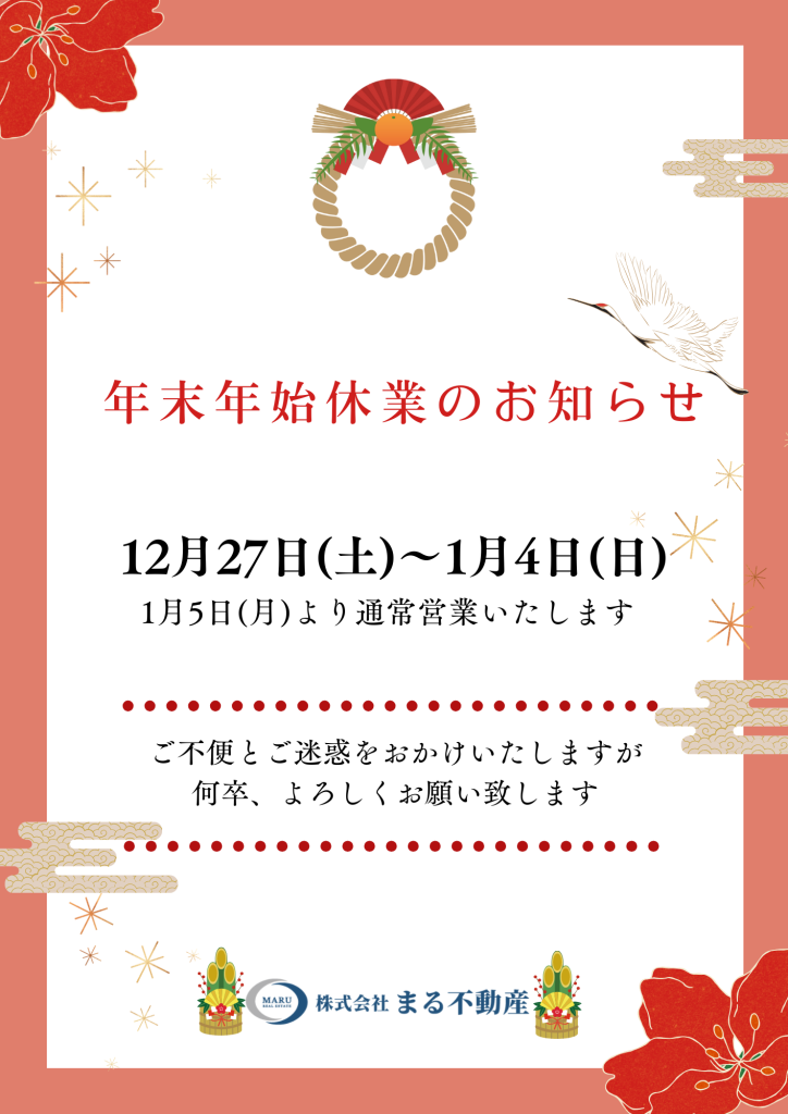 年末年始休業のお知らせ